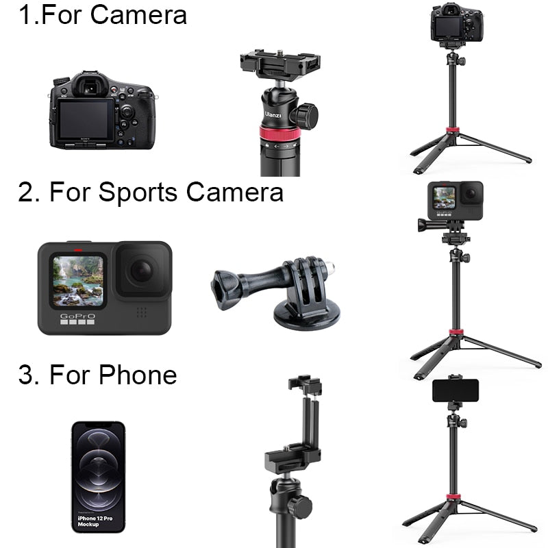 The Ulanzi MT-44 Extend Tripod is made of high-quality aluminum alloy, ensuring durability and stability. It can support your smartphone camera and other accessories securely.